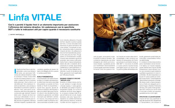 casi più gravi, provocando la totale perdita di potenza frenante. Tale condizione rappresenta una delle emergenze più critiche per la sicurezza stradale, soprattutto perché può manifestarsi improvvisamente e senza segnali premonitori evidenti. Va tenuto conto che quando si frena il liquido accumula calore dai dischi / pastiglie e nelle condizioni più estreme la temperatura del fluido può arrivare in pochissimo tempo ai 200 – 300 ° C. L’ accumulo di umidità e il calore estremo durante frenate prolungate oppure con veicolo carico possono portare all’ ebollizione del liquido, generando quindi bolle che, come detto, compromettono l’ efficacia della frenata. In condizioni di forte stress termico posso manifestarsi anche fenomeni di fading: se il liquido degrada, questo diventa meno viscoso ad alta temperatura e meno efficace; inoltre, può corrodere le parti metalliche o gonfiare le guarnizioni in modo incontrollato. Ad alte temperature un liquido di scarsa qualità può diventare troppo fluido, compromettendo ulteriormente la pressione di frenata. Allo stesso modo, a basse temperature un fluido non adeguato può indurirsi troppo e ritardare l’ intervento del freno. Per questo motivo gli standard DOT introducono anche limiti di viscosità a freddo per garantire operatività anche a climi rigidi.