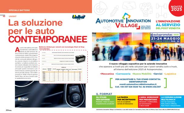 Automotive Innovation Village è un ’ iniziativa a cura delle testate Car Carrozzeria , Parts , Parts in Officina , Parts Truck edite da DBINFORMATION SpA