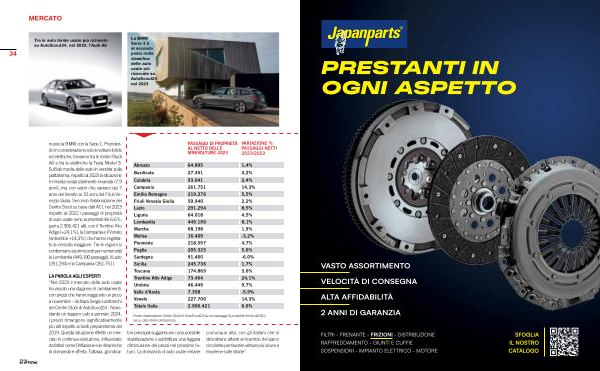 La BMW Serie 3 è al secondo posto nella classifica delle auto usate più ricercate su AutoScout24 nel 2023 nuovo la BMW con la Serie 1 . Prendendo in considerazione solo le vetture ibride ed elettriche , troviamo tra le ibride l ’ Audi A6 e tra le elettriche la Tesla Model 3 . Sull ’ età media delle auto in vendita sulla piattaforma , rispetto al 2023 la situazione è rimasta sostanzialmente invariata ( 7,9 anni ), ma con valori che variano dai 7 anni del Veneto ai 10 anni del Friuli Venezia Giulia . Secondo l ’ elaborazione del Centro Studi su base dati ACI , nel 2023 rispetto al 2022 i passaggi di proprietà di auto usate sono aumentati del 6,6 %, pari a 2.906.421 atti , con il Trentino Alto Adige (+ 24,1 %), la Campania e il Veneto ( entrambe + 14,3 %) che hanno registrato la crescita maggiore . Tra le regioni si confermano ai primi posti per numerosità la Lombardia ( 449.190 passaggi ), il Lazio ( 291.294 ) e la Campania ( 261.751 ).