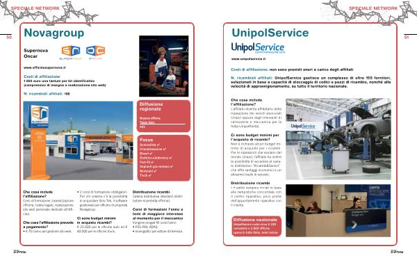 N. ricambisti affiliati: UnipolService gestisce un complesso di oltre 150 fornitori, selezionati in base a capacità di stoccaggio di codici e pezzi di ricambio, nonché alla velocità di approvvigionamento, su tutto il territorio nazionale.