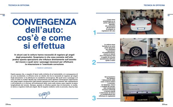 Capita spesso che, a seguito di lavori sulla ciclistica di un’ automobile o in conseguenza di un urto accidentale, in officina arrivi un cliente che ha la necessità di regolare gli angoli degli pneumatici: si fa effettuare la cosiddetta convergenza. Ma quali sono i passaggi e di cosa si tratta in realtà? Quella che comunemente viene definita convergenza rappresenta uno degli angoli caratteristici dell’ assetto geometrico dell’ auto insieme alla campanatura e all’ incidenza e si riferisce all’ inclinazione delle ruote sullo stesso asse rispetto al piano longitudinale del veicolo. Dunque, quando si effettua questo tipo di intervento, in realtà, si vanno a regolare molti più angoli. Qui di seguito vediamo come si procede, step by step