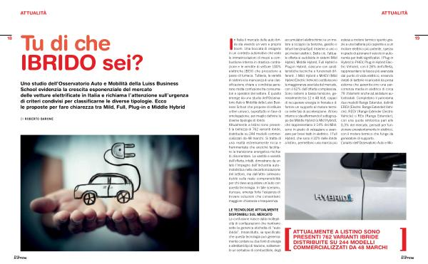 accumulatori elettrochimici e un motore a scoppio( a benzina, gasolio o bifuel benzina / Gpl) insieme a uno o più motori elettrici. Detto ciò, l’ attuale offerta si suddivide in sistemi Mild Hybrid, Middle Hybrid, Full Hybrid e Plug-in Hybrid, ciascuno con caratteristiche tecniche e funzionali differenti. I Mild Hybrid o MHEV( Mild Hybrid Electric Vehicle) costituiscono la maggioranza assoluta del mercato, con il 62 % dell’ offerta complessiva. Sono sistemi a bassa tensione, generalmente tra 12 e 48 Volt, capaci di recuperare energia in frenata e di fornire un supporto al motore termico nelle fasi di accelerazione. Al loro interno si sta affermando il sottogruppo dei Middle Hybrid( o Mid Hybrid), che rappresentano il 14 % dei Mild: sono in grado di veleggiare e avanzare per brevi tratti in elettrico. I Full Hybrid, che sono il 10 % delle ibride a listino, permettono una marcia più |