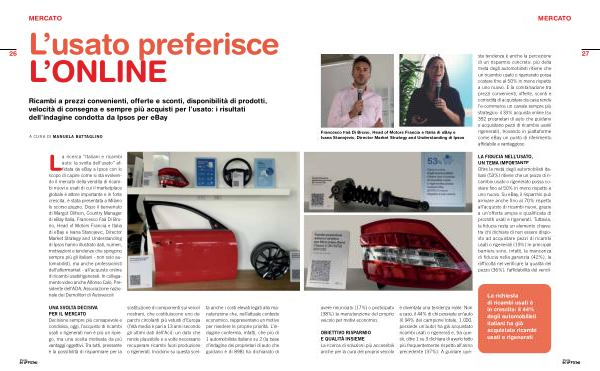 La ricerca“ Italiani e ricambi auto: la svolta dell’ usato” affidata da eBay a Ipsos con lo scopo di capire come si sta evolvendo il mercato della vendita di ricambi nuovi e usati di cui il marketplace globale è attore importante e in forte crescita, è stata presentata a Milano lo scorso giugno. Dopo il benvenuto di Margot Olifson, Country Manager di eBay Italia, Francesco Faà Di Bruno, Head of Motors Francia e Italia di eBay e Ivana Stanojevic, Director Market Strategy and Understanding di Ipsos hanno illustrato dati, numeri, motivazioni e tendenze che spingono sempre più gli italiani- non solo automobilisti, ma anche professionisti dell’ aftermarket- all’ acquisto online di ricambi usati / rigenerati. In collegamento video anche Alfonso Calò, Presidente dell’ ADA, Associazione nazionale dei Demolitori di Autoveicoli.