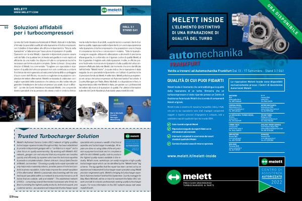 Melett Inside è l ’ elemento che contraddistingue la qualità della riparazione di un turbo . Dimostra che un turbocompressore è stato riparato presso un Centro di Assistenza Autorizzato Melett che si avvale di componenti Melett originali .
