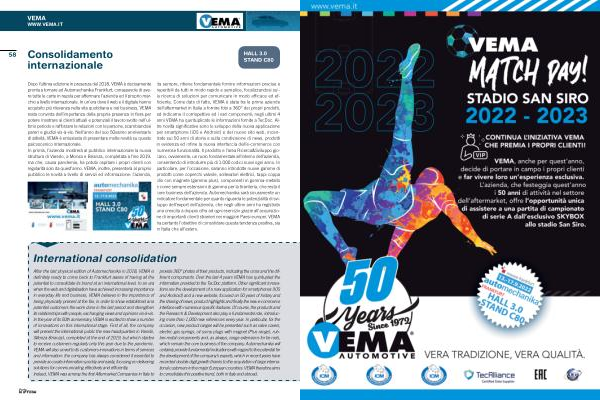 After the last physical edition of Automechanika in 2018 , VEMA is definitely ready to come back to Frankfurt aware of having all the potential to consolidate its brand at an international level . In an era when the web and digitalisation have achieved increasing importance in everyday life and business , VEMA believes in the importance of being physically present at the fair , in order to show established and potential customers the work done in the last period and strengthen its relationships with people , exchanging views and opinions vis-à-vis . In the year of its 50th anniversary , VEMA is excited to show a number of innovations on this international stage . First of all , the company will present the international public the new headquarters in Varedo , ( Monza-Brianza ), completed at the end of 2019 , but which started to receive customers regularly only this year due to the pandemic . VEMA will also unveil to its customers innovations in terms of services and information : the company has always considered it essential to provide accurate information quickly and easily , focusing on delivering solutions for communicating effectively and efficiently . Indeed , VEMA was among the first Aftermarket Companies in Italy to provide 360 ° photos of their products , indicating the cross and the different components . Over the last 4 years VEMA has quintupled the information provided to the TecDoc platform . Other significant innovations are the development of a new application for smartphones ( IOS and Android ) and a new website , focused on 50 years of history and the sharing of news , product highlights and finally the new e-commerce interface with numerous specific features . Of course , the products and the Research & Development also play a fundamental role , introducing more than 1,000 new references every year . In particular , for the occasion , new product ranges will be presented such as valve covers , electric gas springs , oil sump plugs with magnet ( Plus range ), rubber-metal components and , as always , range extensions for tie rods , which remain the core business of the company . Automechanika will certainly provide fundamental indications with regard to the potential for the development of the company ’ s exports , which in recent years have recorded double-digit growth thanks to the acquisition of large international customers in the major European countries . VEMA therefore aims to consolidate this positive trend , both in Italy and abroad .