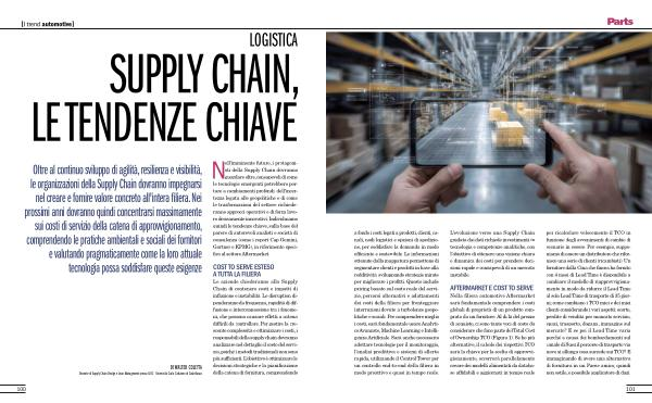 Nell’ imminente futuro, i protagonisti della Supply Chain dovranno guardare oltre, consapevoli di come le tecnologie emergenti potrebbero portare a cambiamenti profondi, dell ' incertezza legata alle geopolitiche e di come le trasformazioni del settore richiederanno approcci operativi e di forza lavoro decisamente innovativi. Individuiamo quindi le tendenze chiave, sulla base del parere di autorevoli analisti e società di consulenza( come i report Cap Gemini, Gartner e KPMG), in riferimento specifico al settore Aftermarket.