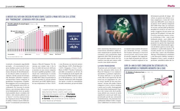 Scopriamo più nel dettaglio i risultati che emergono dalla ricerca di Bain & Company il cui sommario introduttivo è piuttosto esplicativo:“ Il settore dell’ auto è a un punto di svolta. Ma se non sapesse da che lato virare per un raggiungere un... porto sicuro? Analisi di una non-transizione”. In base allo studio, l’ intero comparto si trova a dover scendere a patti con la realtà, fronteggiando due dati di fatto fondamentali. Il primo è che è ormai certo che la produzione globale non crescerà in modo significativo ancora per molti anni, proiettando quindi una sostanziale normalizzazione, che possiamo tranquillamente definire stallo o stagnazione( addirittura recessione in alcune regioni) senza rischiare di passare per catastrofici. Il Cagr- acronimo del termine britannico Compound annual growth, ossia il tasso annuo di crescita composto, che rappresenta uno degli strumenti più utili per valutare i risultati raggiunti in un determinato periodo di tempo- del settore, in questo caso riferito ai volumi complessivi, è stato del + 3,3 % negli anni 2001-2017, ma si stima in un misero + 0,3 % nell’ arco temporale 2017-2030. Dopo oltre un ventennio di crescita costante della produzione mondiale di veicoli la cui curva sui grafici viaggiava di pari passo con quella del Pil globale, l’ avvento del Covid ha interrotto questa virtuosa correlazione, il che- come si può facilmente intuire- non è affatto un buon segnale. Oltretutto il disaccoppiamento tra queste due importanti variabili è stato ulteriormente aggravato da fattori quali la crisi dei semiconduttori e quella della logistica. Il secondo assunto con cui l’ automotive deve fare i conti è che l ' Occidente( Europa e Nord America) è destinato a una decrescita( infelice) insieme a Giappone e Corea, i quali- secondo le proiezioni- potrebbero subire dei“ se-