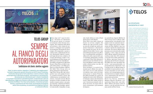 A Pero , nell ’ hinterland milanese , si trova la nuova sede dell ' azienda dotata di uffici centralizzati per essere più efficienti e sinergici nello sviluppo delle attività strategiche , di un ’ aula corsi e di uno showroom operativo , cuori pulsanti di Telos Academy . Tutto questo è a completa disposizione delle officine che vogliono entrare nel mondo Telos Group . Nel 2023 il fatturato di Telos Group è stato di 133 milioni di euro . Il Gruppo si avvale di 420 collaboratori e di 50 filiali che hanno servito ogni giorno 5mila officine del Nord Italia . Sono attualmente soci di Telos Group :