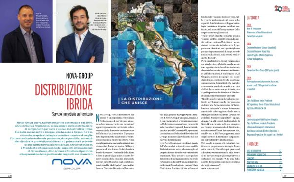 bile della gestione dei rapporti con i fornitori di Nova-Group . Fisiologico , dunque , è il coinvolgimento di organizzazioni come la Federazione nazionale dei consorzi di auto ricambisti regionali Fencar inizialmente e poi del Consorzio G6 , operazioni che confermano l ’ efficacia della visione del Gruppo in merito all ’ evoluzione del suo mercato di riferimento . Oggi Nova-Group rappresenta nel mondo dell ’ aftermarket automotive un modello di distribuzione unico , che convoglia al proprio interno distributori e ricambisti organizzati . “ Ecco perché ci piace parlare di noi come di un ’ organizzazione che crede fortemente nella distribuzione integrata ”, conferma il Presidente del Gruppo , Chris Hutchinson . La forza di Nova-Group si fonda sulla relazione tra le persone , sulla crescita professionale del team , sulla capacità di individuare e sviluppare strategie condivise e di aprire canali di confronto , nel nome dell ’ integrazione e della cooperazione tra gli associati . “ Tutti i nostri progetti e le nostre attività vengono gestiti e condotti seguendo questa visione - continua Hutchinson - secondo una visione che include anche il rapporto con i fornitori , con i quali sigliamo partnership commerciali di lungo periodo fondate sulla fiducia , sulla serietà e sul rispetto dei ruoli ”. Per i fornitori Nova-Group rappresenta un interlocutore affidabile , perché monitora e gestisce tutte le realtà e le dinamiche distributive che interessano il settore dell ’ aftermarket . A conferma di ciò , il Gruppo annovera tra i propri soci sia distributori di eccellente livello , sia alcune organizzazioni di ricambisti che in molte aree sono in grado di garantire un giro d ’ affari decisamente competitivo rispetto a quello prodotto dai distributori di minori dimensioni storicamente presenti . “ Queste sono le ragioni che ci hanno motivato a sviluppare quella che possiamo definire una forma innovativa di ‘ distribuzione integrata ’ e siamo fortemente convinti del valore aggiunto che la nostra strategia apporterà all ’ intero Gruppo per generare business aggiuntivo ”, spiega Amura . Un altro asset fondamentale di Nova-Group consiste nella sua presenza nel Gruppo internazionale di distribuzione aftermarket Temot International che , con 114 soci in 103 Paesi , rappresenta uno degli operatori di riferimento sul panorama dell ’ automotive internazionale . Con queste premesse e la volontà di continuare a programmare strategie di crescita vincenti , Nova-Group è pronta ad affrontare con entusiasmo le sfide future di un mercato sempre più competitivo e a dichiarare con orgoglio : “ A 10 anni dalla nascita del consorzio sono queste le chiavi del nostro successo !”. www . nova-group . it