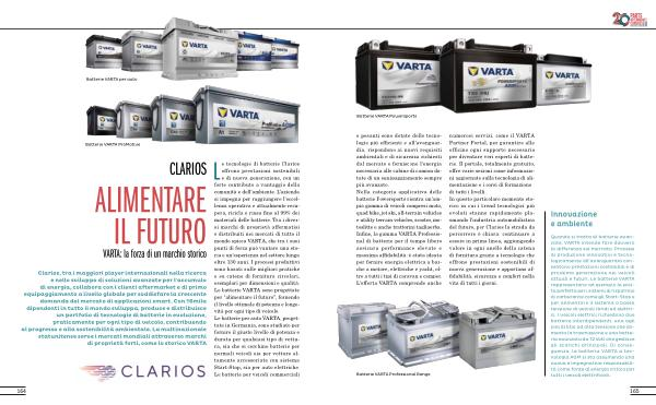 Clarios , tra i maggiori player internazionali nella ricerca e nello sviluppo di soluzioni avanzate per l ' accumulo di energia , collabora con i clienti aftermarket e di primo equipaggiamento a livello globale per soddisfare la crescente domanda del mercato di applicazioni smart . Con 16mila dipendenti in tutto il mondo sviluppa , produce e distribuisce un portfolio di tecnologie di batterie in evoluzione , praticamente per ogni tipo di veicolo , contribuendo al progresso e alla sostenibilità ambientale . La multinazionale statunitense serve i mercati mondiali attraverso marchi di proprietà forti , come lo storico VARTA