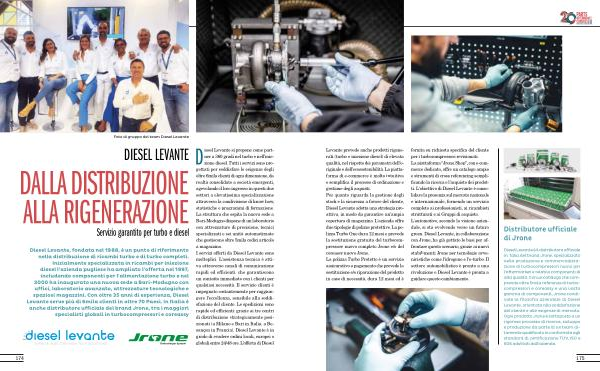 Inizialmente specializzata in ricambi per iniezione diesel l ’ azienda pugliese ha ampliato l ' offerta nel 1997 , includendo componenti per l ' alimentazione turbo e nel 2000 ha inaugurato una nuova sede a Bari-Modugno con uffici , laboratorio avanzato , attrezzature tecnologiche e spaziosi magazzini . Con oltre 35 anni di esperienza , Diesel Levante serve più di 6mila clienti in oltre 70 Paesi . In Italia è anche distributore ufficiale del brand Jrone , tra i maggiori specialisti globali in turbocompressori e coreassy