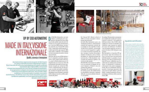 Dal 1992 Exo Automotive , con sede a Padova , si distingue per la produzione e distribuzione di ricambi auto di alta qualità , tanto da essere diventata un vero punto di riferimento per il mercato IAM italiano . La gamma proposta con il brand OP , molto vasta , comprende esclusivamente ricambi equivalenti agli originali OES tutti testati , certificati e con standard elevati riconosciuti nel settore a livello internazionale . Alla base del successo di Exo Automotive c ’ è anzitutto la struttura organizzativa , tanto solida quanto innovativa , grazie all ’ interconnessione di 11 dipartimenti in cui lavorano oltre 80 professionisti operando in team organizzati al meglio per assicurare l ’ efficienza e l ’ ottimizzazione di ogni processo , secondo un modello aziendale che considera il capitale umano come il principale asset strategico , partendo dall ’ eccellenza operativa e dalla condivisione del valore .