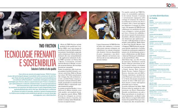Un aspetto centrale per TMD Friction è la sostenibilità ambientale dei sistemi frenanti . L ' azienda è costantemente impegnata nello sviluppo di soluzioni che riducono la produzione di polvere dei freni e il rumore , oltre a essere più leggere per diminuire il consumo di carburante . Gli ingegneri di TMD Friction collaborano con i produttori di veicoli per sviluppare e testare prodotti per freni e frizioni che soddisfino i più elevati requisiti di prestazioni e durabilità , offrendo soluzioni tecniche ottimali per ogni applicazione . Con oltre 4.200 dipendenti in tutto il mondo e sedi in Europa , Medio Oriente , Stati Uniti , Brasile , Messico , Cina e Giappone , TMD Friction ha una presenza globale significativa . In Italia , l ' azienda ha recentemente ampliato la propria rete di distribuzione grazie a nuove collaborazioni con Aldo Romeo e Autocom Palermo per la distribuzione dei marchi Textar e Don . Aldo Romeo Spa , con oltre 80 anni di esperienza , distribuirà i marchi Textar e Don per autovetture su tutto il territorio italiano , avvalendosi di 9 piattaforme logistiche situate a Napoli , Ancona , Bari , Catania , Rende , Pescara , Cagliari , Padova e Brescia . Autocom , nata nel 2000 a Palermo , distribuirà i prodotti frenanti Textar per autovetture in tutta la Sicilia dal proprio magazzino centrale di oltre 4.000 metri quadrati situato a Carini , hub logistico principale per la regione . A partire dall ' inizio del 2024 , TMD Friction Italia ha ampliato la collaborazione con Dierre Dimensione Ricambi , un distributore con sede a Roma specializzato in ricambi per i veicoli industriali e con filiali in tutta Italia . Dierre si occuperà della distribuzione dei prodotti Textar per veicoli commerciali , oltre al marchio Don .
