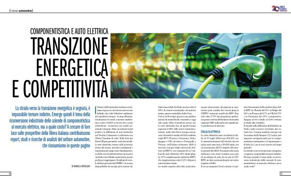 Le auto elettriche pure circolanti in Italia al 31 luglio 2024 sono 254.615 , con le immatricolazioni full electric che da inizio anno sono pari a 38.838 unità , con un incremento del 6 % rispetto allo stesso periodo del 2023 . Nei primi sette mesi dell ’ anno sono state vendute poco più di un milione di auto , di cui solo il 3,8 % BEV , un dato sostanzialmente invariato rispetto al 2023 . E se nei maggiori Paesi europei si registra l ’ incremento della market share delle BEV ( in Olanda del 31 %, in Belgio del 24 % e in Francia del 17 %, in UK del 17 % e in Germania del 13 %) è progressivo , Spagna ( al 5 %) e Italia ( al 3,9 %) restano in fondo alla classifica . Il ritardo nella diffusione dell ’ elettrico in Italia , unito al parco circolante più vetusto tra i 5 major markets europei con l ' eccezione della Spagna ( 11,5 anni ), può apparire un ’ opportunità per la componentistica automotive e la riparazione , e di fatto lo è , ma lo sarà ancora sul lungo periodo ? La strada verso la transizione energetica è segnata , è impossibile tornare indietro . Emerge quindi il tema della riconversione industriale delle aziende di componentistica al mercato elettrico , ma a quale costo ?