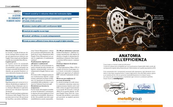 Digitalizzazione per accrescere la resilienza , blockchain per migliorare l ’ e- cosistema , AI per ottimizzare i processi , cloud per efficientare le operation , metaverso per velocizzare il processo decisionale . Questi 5 trend tecnologici guideranno l ’ evoluzione della Supply Chain nei prossimi mesi in base alle previsioni di OpenText , specialista dell ’ Enter- prise Content Management , i sistemi per la gestione dell ’ informazione . Ma quali sono le armi a disposizione della Supply Chain Management per gestire la complessità e il cambiamento continuo ? Trasformazione digitale per affrontare i cambiamenti Per affrontare la crisi permanente attuale le aziende dovranno investire sul digitale , automatizzando i processi e ottimizzando la Supply Chain su vasta scala . Dovranno inoltre sviluppare piani per una trasformazione digitale a lungo termine adottando tecnologie di Industry 4.0 , funzionali ad aumentare la sostenibilità della produzione e a promuovere l ’ adozione di processi agili . Blockchain per favorire la trasparenza Per fare fronte alla maggiore sensibilità “ green ” di istituzioni e consumatori , le imprese dovranno migliorare il loro reporting di sostenibilità , dimostrando che i loro prodotti sono stati acquistati / fabbricati in modo responsabile .