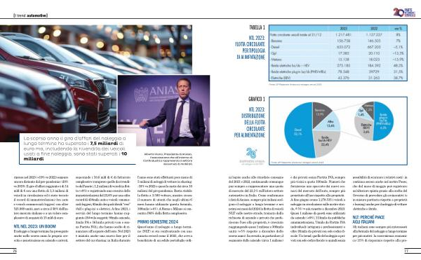 ni legato anche alle ritardate consegne del 2021 e 2022 , continuando comunque pur sempre a rappresentare una quota di mercato del 22,1 % sull ’ intero settore automotive in Italia . Come confermano i dati di Aniasa , sempre più italiani scelgono il noleggio a lungo termine e nei primi sei mesi del 2024 la flotta di veicoli NLT sulle nostre strade , trainata dalla richiesta di aziende e privati che preferiscono l ’ uso alla proprietà , è cresciuta raggiungendo quasi 1 milione e 300mila unità (+ 5 % rispetto a dicembre dello scorso anno ). In crescita , in particolare , il segmento delle aziende ( circa 1 milione )