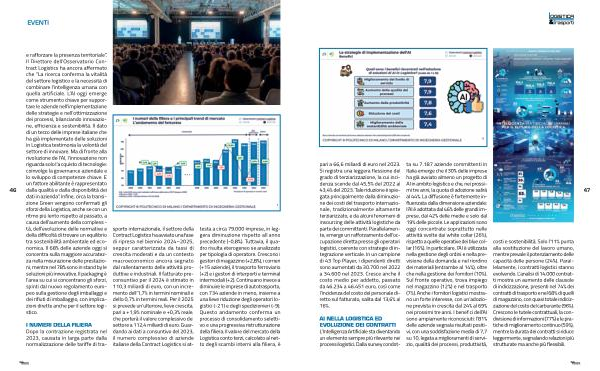 pari a 66,6 miliardi di euro nel 2023. Si registra una leggera flessione del grado di terziarizzazione, la cui incidenza scende dal 45,5 % del 2022 al 43,4 % del 2023. Tale riduzione è spiegata principalmente dalla diminuzione dei costi del trasporto internazionale, tradizionalmente altamente terziarizzato, e da alcuni fenomeni di insourcing delle attività logistiche da parte dei committenti. Parallelamente, emerge un rafforzamento dell’ occupazione diretta presso gli operatori logistici, coerente con strategie di integrazione verticale. In un campione di 43 Top Player, i dipendenti diretti sono aumentati da 30.700 nel 2022 a 34.600 nel 2023. Cresce anche il costo medio per addetto, passato da 46.234 a 46.451 euro, così come l’ incidenza del costo del personale diretto sul fatturato, salita dal 13,6 % al 16 %.