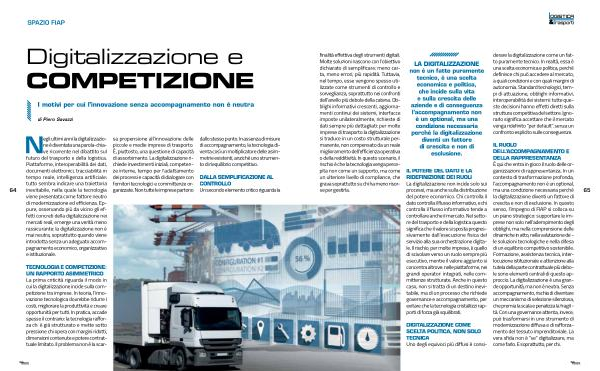 IL RUOLO DELL’ ACCOMPAGNAMENTO E DELLA RAPPRESENTANZA È qui che entra in gioco il ruolo delle organizzazioni di rappresentanza. In un contesto di trasformazione profonda, l’ accompagnamento non è un optional, ma una condizione necessaria perché la digitalizzazione diventi un fattore di crescita e non di esclusione. In questo senso, l’ impegno di FIAP si colloca su un piano strategico: supportare le imprese non solo nell’ adempimento degli obblighi, ma nella comprensione delle dinamiche in atto, nella valutazione delle soluzioni tecnologiche e nella difesa di un equilibrio competitivo sostenibile. Formazione, assistenza tecnica, interlocuzione istituzionale e attenzione alla tutela della parte contrattuale più debole sono elementi centrali di questo approccio. La digitalizzazione è una grande opportunità, ma non è neutra. Senza accompagnamento, rischia di diventare un meccanismo di selezione silenziosa, che premia la scala e penalizza la fragilità. Con una governance attenta, invece, può trasformarsi in uno strumento di modernizzazione diffusa e di rafforzamento del tessuto imprenditoriale. La vera sfida non è“ se” digitalizzare, ma come farlo. E soprattutto, per chi.