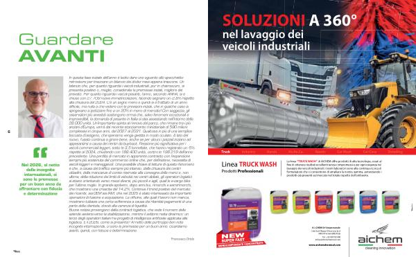 La linea“ TRUCK WASH” di AICHEM offre prodotti di alta tecnologia, creati al fine di ottenere risultati eccellenti senza compromessi e per ogni esigenza nel lavaggio dei veicoli industriali. I nostri laboratori sono alla continua ricerca di formulazioni che ci consentono di ampliare la nostra gamma, potenziando i prodotti già presenti sul mercato nel totale rispetto dell’ ambiente.