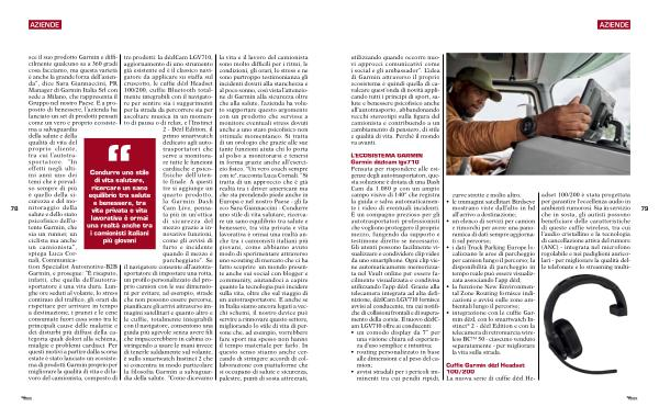 78 sce il suo prodotto Garmin e difficilmente qualcuno sa a 360 gradi cosa facciamo , ma questa varietà è anche la grande forza dell ’ azienda ”, dice Sara Giannaccini , PR Manager di Garmin Italia Srl con sede a Milano , che rappresenta il Gruppo nel nostro Paese . E a proposito di benessere , l ’ azienda ha lanciato un set di prodotti pensati come un vero e proprio ecosistema a salvaguardia della salute e della qualità di vita del proprio cliente , tra cui l ’ autotrasportatore . “ In effetti negli ultimi anni uno dei temi che è prevalso sempre di più è quello della sicurezza e del monitoraggio della salute e dello stato psicofisico dell ’ u- tente Garmin , che sia un runner , un ciclista ma anche un camionista ”, spiega Luca Cornali , Communication Specialist Automotive-B2B Garmin , e prosegue : “ È risaputo , infatti , che quella dell ’ autotrasportatore è una vita dura . Lunghe ore seduti al volante , lo stress continuo del traffico , gli orari da rispettare per arrivare in tempo a destinazione , i pranzi e le cene consumate fuori casa sono tra le principali cause delle malattie e dei disturbi più diffusi della categoria quali dolori alla schiena , mialgie e problemi cardiaci . Per questi motivi a partire dalla scorsa estate è stato lanciato un ecosistema di prodotti Garmin proprio per migliorare la qualità di vita e di lavoro del camionista , composto di