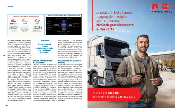 SERVIZI E TRANSIZIONE ALL ’ ELETTRICO Oltre alla completa e consolidata qualità Renault dell ’ assistenza post vendita tramite una rete di officine autorizzate capillarmente diffuse su tutto il territorio nazionale , l ’ a- zienda transalpina offre una serie di servizi per supportare i clienti nella transizione verso l ’ elettrico di cui ha parlato Michele Leone , Direttore Sviluppo Rete & Post Vendita , tra cui la Pianificazione dei percorsi ( in modo da ottimizzare l ’ autonomia dei loro veicoli ), Smart Charging ( soluzioni di ricarica intelligenti ), Formazione degli autisti ( formazione rivolta agli autisti su come guidare e mantenere i veicoli elettrici in modo sicuro ed efficiente ) e Monitoraggio della flotta ( per consentire ai clienti di tenere traccia delle prestazioni dei loro