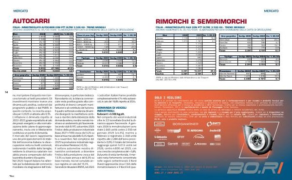 DOMANDA DI VEICOLI INDUSTRIALI. Autocarri > 3.500 kg ptt. Nel comparto dei veicoli industriali oltre le 3,5 tonnellate( trucks) la dinamica appare favorevole. A gennaio 2026 le immatricolazioni sono state 2.665 unità contro 2.550 nel gennaio 2025(+ 4,5 %), mentre a febbraio si registrano 2.348 unità rispetto alle 2.280 dell’ anno precedente(+ 3,0 %). Il totale del bimestre raggiunge quindi 5.013 unità nel 2026, contro 4.830 nel 2025, con una crescita complessiva del + 3,8 %. Dal punto di vista territoriale, il mercato resta fortemente concentrato nelle regioni settentrionali: il Nord Ovest rappresenta circa il 34 % delle immatricolazioni e il Nord Est quastria europea, in particolare tedesca. Nonostante ciò, la bilancia commerciale resta positiva grazie alla competitività di diversi comparti manifatturieri e al contributo del turismo. Il quadro settoriale evidenzia dinamiche divergenti: la manifattura continua a risentire della debolezza della domanda estera, mentre i servizi mostrano un andamento più favorevole. Secondo i dati ISTAT, a dicembre 2025 l’ indice della produzione industriale( base 2021 = 100) cresce del 3,2 % su base annua ma cala dello 0,4 % rispetto a novembre. Nel complesso del 2025 la produzione industriale registra una lieve flessione(-0,2 %). Il settore automotive mostra dinamiche contrastanti: a dicembre l’ indice della produzione cresce del 13,5 % su base annua e del 6,9 % su base mensile, ma nel cumulato annuo registra un calo del 10,3 %. Secondo le rilevazioni ANFIA, nel 2025
