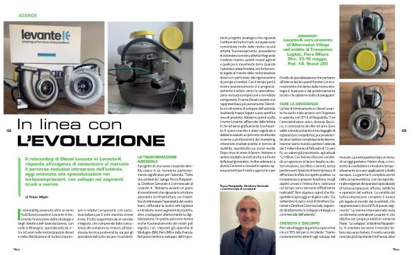 tante progetto strategico che riguarda il settore del turbo truck, sul quale sono concentrate molte delle nostre recenti attività. Successivamente, prevediamo di estendere la nostra attività integrando il settore marino, quindi i mezzi agricoli e quelli per il movimento terra. Quando l’ azienda è stata fondata, era fortemente legata al mondo delle motorizzazioni diesel e in particolare alla rigenerazione di pompe e iniettori. Con il tempo però il nostro posizionamento si è progressivamente evoluto verso la specializzazione nei turbocompressori e nei relativi componenti. Il nome Diesel Levante non rappresentava più pienamente l’ identità e la direzione di sviluppo dell’ azienda, risultando troppo legato a una specifica area di prodotto. Abbiamo quindi scelto il nome Levante, affiancato dalla lettera K che richiama graficamente il sol levante. Il nuovo marchio è stato registrato e abbiamo avviato un percorso strutturato insieme a professionisti del marketing, ottenendo risultati positivi in termini di visibilità, soprattutto sui social media. Dopo circa un anno di lavoro, iniziamo a vedere risultati concreti anche sul fronte della lead generation. Inoltre aderiamo a diversi Consorzi e riceviamo spesso apprezzamenti per il nostro approccio e per