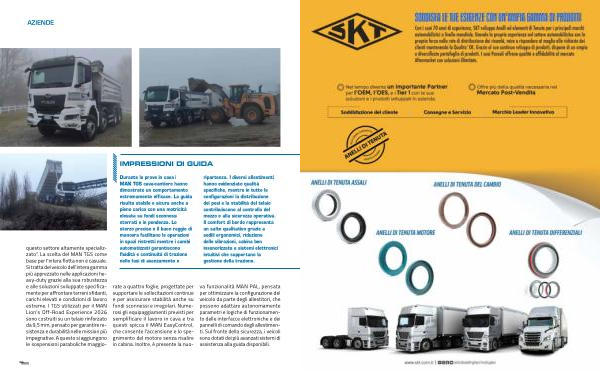 questo settore altamente specializzato”. La scelta del MAN TGS come base per l’ intera flotta non è casuale. Si tratta del veicolo dell’ intera gamma più apprezzato nelle applicazioni heavy-duty grazie alla sua robustezza e alle soluzioni sviluppate specificamente per affrontare terreni sfidanti, carichi elevati e condizioni di lavoro estreme. I TGS utilizzati per il MAN Lion’ s Off-Road Experience 2026 sono costruiti su un telaio rinforzato da 9,5 mm, pensato per garantire resistenza e durabilità nelle mission più impegnative. A questo si aggiungono le sospensioni paraboliche maggio- |