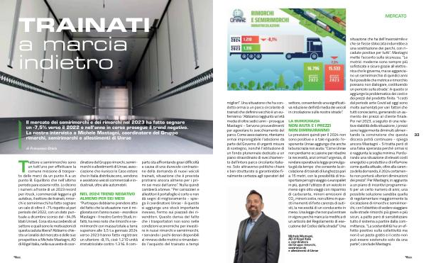 Il mercato dei semirimorchi e dei rimorchi nel 2023 ha fatto segnare un -7,5 % verso il 2022 e nell ’ anno in corso prosegue il trend negativo . La nostra intervista a Michele Mastagni , coordinatore del Gruppo rimorchi , semirimorchi e allestimenti di Unrae