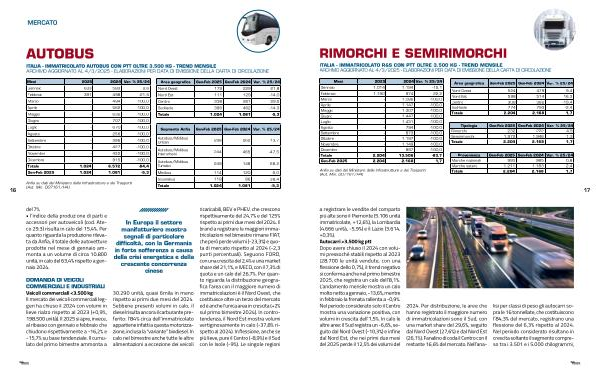 DOMANDA DI VEICOLI COMMERCIALI E INDUSTRIALI Veicoli commerciali < 3.500 kg Il mercato dei veicoli commerciali leggeri ha chiuso il 2024 con volumi in lieve rialzo rispetto al 2023(+ 0,9 %, 198.500 unità). Il 2025 si apre, invece, al ribasso con gennaio e febbraio che chiudono rispettivamente a-16,2 % e-15,7 % su base tendenziale. Il cumulato del primo bimestre ammonta a