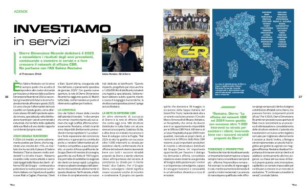 LA RETE DI OFFICINE CBR Un altro elemento di successo di Dierre è la rete di officine CBR, che conta oggi circa 180 strutture distribuite in tutta Italia con alcune aree ancora scoperte, Calabria e Sicilia, e altre dove si è iniziato ma ancora in fase di sviluppo come la Puglia.“ Nel 2024 la rete ha gestito con successo oltre 1.000 interventi su strada per assistere i clienti, confermando che le officine del network stanno lavorando bene con tutti i soccorsi stradali proposti da Dierre e dando ulteriore rilievo all’ importanza del servizio di assistenza su strada per il cliente finale”, dice Sabino. Per il Gruppo Dierre, coinvolgere i clienti significa creare occasioni uniche di incontro e condivisione. È proprio con questo
