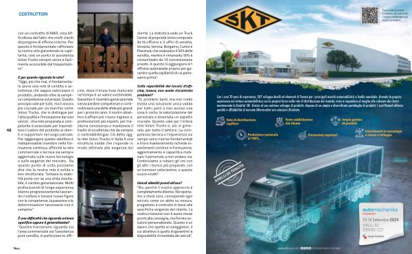 cine, dove il know how maturato nel tempo è un valore inestimabile. Garantire il ricambio generazionale senza perdere competenze e continuità sarà una delle sfide più grandi per i prossimi anni. Il nostro obiettivo è affiancare i nuovi ingressi ai professionisti più esperti, per trasferire conoscenze e mantenere il livello di eccellenza che da sempre ci contraddistingue. Ciò detto oggi la rete Volvo Trucks in Italia è una struttura solida che risponde in modo ottimale alle esigenze del |
