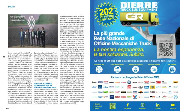 Amministratore Delegato JUNA, la joint venture tra Scania e sennder dedicata al trucks-a-service:“ L’ e- lettrico non può essere improvvisato: servono dati, pianificazione e supporto continuo”. Un contributo decisivo è arrivato anche dall’ analisi di Gianmatteo Torri, Direttore Commerciale South Region sennder, che ha valutato oltre 1,3 milioni di modelli TCO nei principali Paesi europei, evidenziando come“ entro il 2030 l’ elettrico sarà più conveniente del diesel”. Nel quadro dell’ ecosistema Scania si inserisce anche la consulenza sulla ricarica. Simone Martinelli, Charging Solutions Manager:“ Con strumenti di analisi sviluppati internamente, esaminiamo le tratte da elettrificare, ottimizzando la strategia di ricarica privata e i servizi di ricarica pubblica”. Sul fronte dei servizi, Fabrizio Previdi, Direttore Scania Financial Services Italia, ha illustrato le soluzioni finanziarie e assicurative dedicate all’ elettrico, mentre Fredrik Swartling, Direttore Service Sales & |