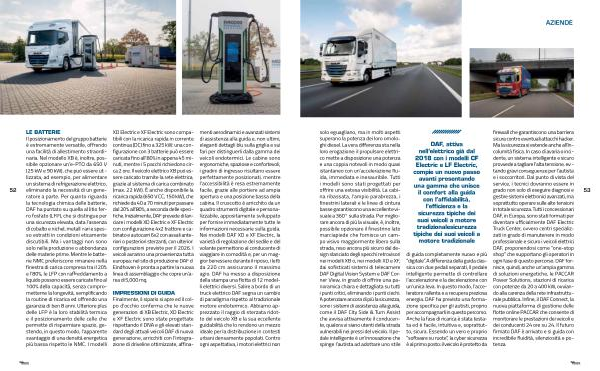 firewall che garantiscono una barriera sicura contro eventuali attacchi hacker. Ma la sicurezza si estende anche all’ incolumità fisica. In caso di avaria o incidente, un sistema intelligente e sicuro provvede a tagliare l’ alta tensione, evitando gravi conseguenze per l’ autista e i soccorritori. Dal punto di vista del service, i tecnici dovranno essere in grado non solo di eseguire diagnosi e gestire sistemi elettronici avanzati, ma soprattutto operare sulle alte tensioni in totale sicurezza. Tutti i concessionari DAF, in Europa, sono stati formati per diventare ufficialmente DAF Electric Truck Center, ovvero centri specializzati in grado di manutenere in modo professionale e sicuro i veicoli elettrici DAF, proponendosi come“ one-stop shop” che supportano gli operatori in ogni fase di questo percorso. DAF fornisce, quindi, anche un’ ampia gamma di soluzioni energetiche, le PACCAR Power Solutions, stazioni di ricarica con potenze da 20 a 400 kW, ovviando alla carenza della rete infrastrutturale pubblica. Infine, il DAF Connect, la nuova piattaforma di gestione delle flotte online PACCAR che consente di monitorare le prestazioni dei veicoli e dei conducenti 24 ore su 24. Il futuro firmato DAF è arrivato e si guida con incredibile fluidità, silenziosità e potenza. |