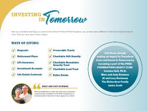 When we established our estate plan , there was no doubt that it would include a contribution to the PHSC Foundation for an endowed student scholarship . A forever legacy for our family .”
