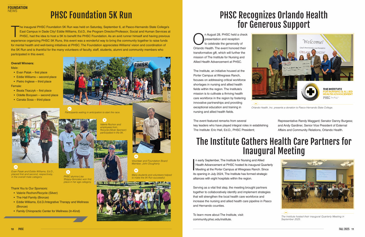 In early September, The Institute for Nursing and Allied Health Advancement at PHSC hosted its inaugural Quarterly Meeting at the Porter Campus at Wiregrass Ranch. Since its opening in July 2024, The Institute has formed strategic alliances with eight hospitals within the region.