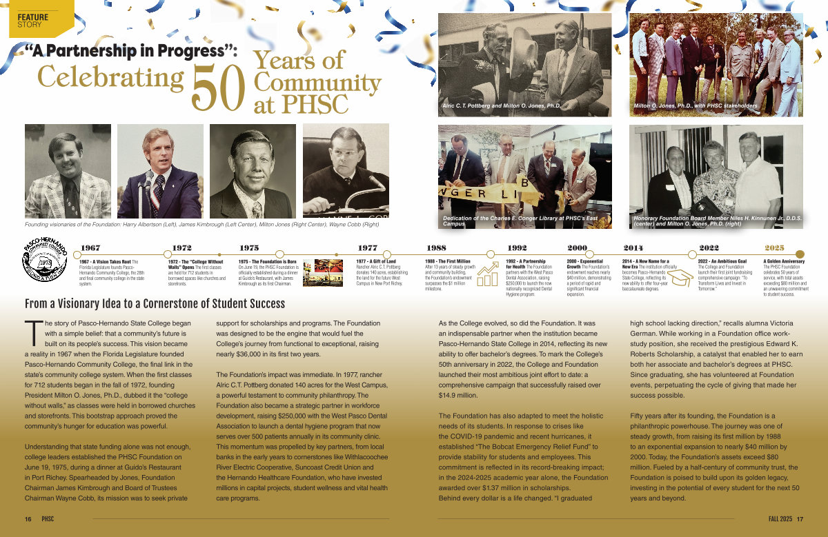 A Golden Anniversary The PHSC Foundation celebrates 50 years of service, with total assets exceeding $ 80 million and an unwavering commitment to student success. |