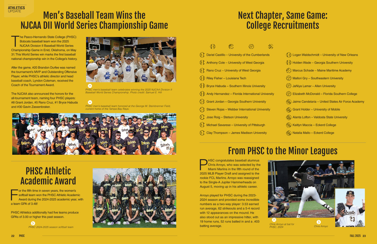 Arroyo played for PHSC during the 2023- 2024 season and provided some incredible numbers as a two-way player: 3.53 earned run average, 62 strikeouts and a 5-4 record with 12 appearances on the mound. He also stood out as an impressive hitter, with 19 home runs, 52 runs batted in and a. 403 batting average.
