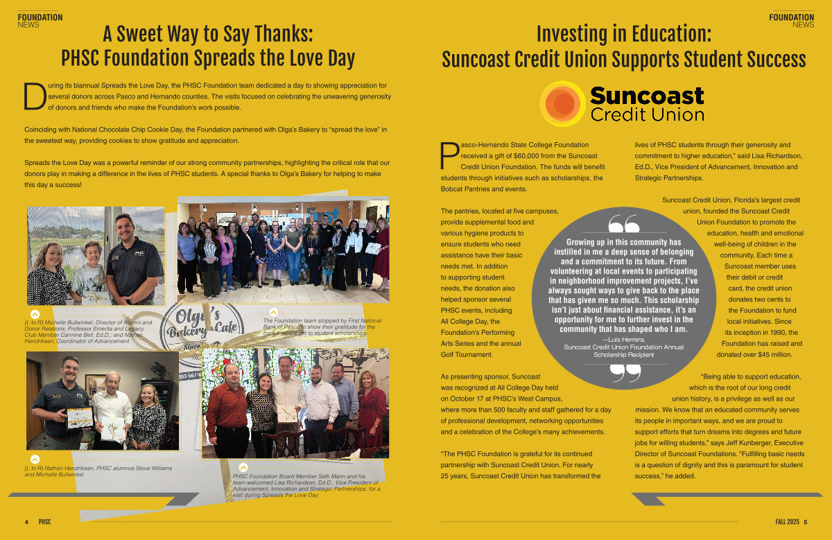 During its biannual Spreads the Love Day, the PHSC Foundation team dedicated a day to showing appreciation for several donors across Pasco and Hernando counties. The visits focused on celebrating the unwavering generosity of donors and friends who make the Foundation’ s work possible.