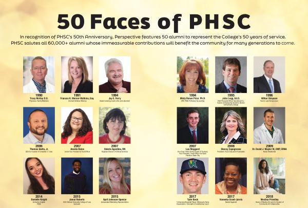 In recognition of PHSC ’ s 50th Anniversary , Perspective featu PHSC salutes all 60,000 + alumni whose immeasurable contribu