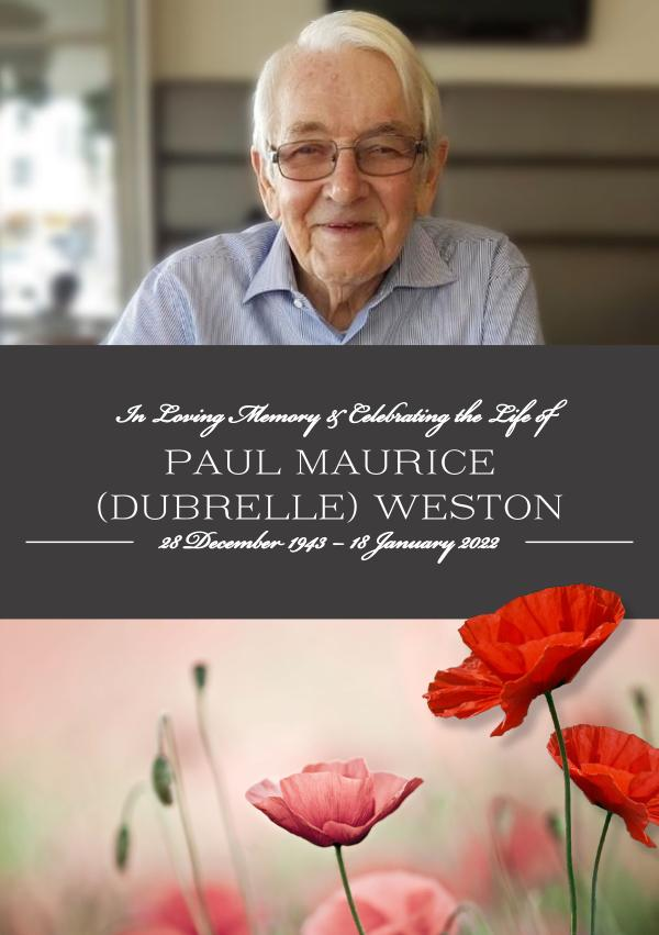 In Loving Memory & Celebrating the Life of PAUL MAURICE ( DUBRELLE ) WESTON 28 December 1943 – 18 January 2022