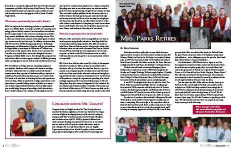 Just the other day, Mrs. Parks told me that she“ grew up at St. Francis.” She sees the gift of this holy community and she truly loves us. Well, the feeling is mutual. Interestingly, she is called“ Kai”( a nickname she picked up in Japan when she was a year and a half old) when her legal name is“ Carol.” We all know that“ Carol” means song or hymn. We have enjoyed and treasured your song, Carol Parks. Continue to sing that graceful tune. We will continue to hum it here on campus. Some songs we just never get tired of hearing.