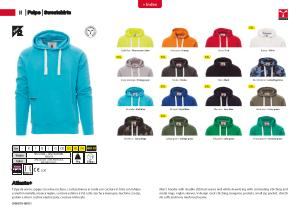 Felpa da uomo , cappuccio a due cuciture , coulisse bianca in corda con cuciture in tinta con la felpa e anelli in metallo , manica raglan , cucitura estetica a V al collo , tasche a marsupio , taschino con zip , polsini e vita in costina elasticizzata , cuciture rinforzate .