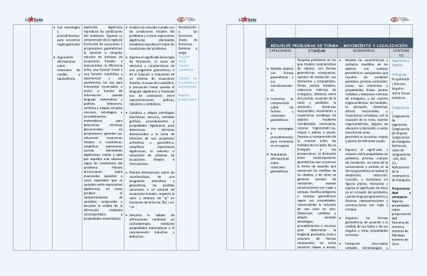Resuelve problemas en los que modela características de objetos con formas geométricas compuestas , cuerpos de revolución , sus elementos y propiedades , líneas , puntos notables , relaciones métricas de triángulos , distancia entre dos puntos , ecuación de la recta y parábola ; la ubicación , distancias inaccesibles , movimiento y trayectorias complejas de objetos mediante coordenadas cartesianas , razones trigonométricas , mapas y planos a escala . Expresa su comprensión de la relación entre las medidas de los lados de un triángulo y sus proyecciones , la distinción entre trasformaciones geométricas que conservan la forma de aquellas que conservan las medidas de los objetos , y de cómo se generan cuerpos de revolución , usando construcciones con regla y compás . Clasifica polígonos y cuerpos geométricos según sus propiedades , reconociendo la inclusión de una clase en otra . Selecciona , combina y adapta variadas estrategias , procedimientos y recursos para determinar la longitud , perímetro , área o volumen de formas compuestas , así como construir mapas a escala ,