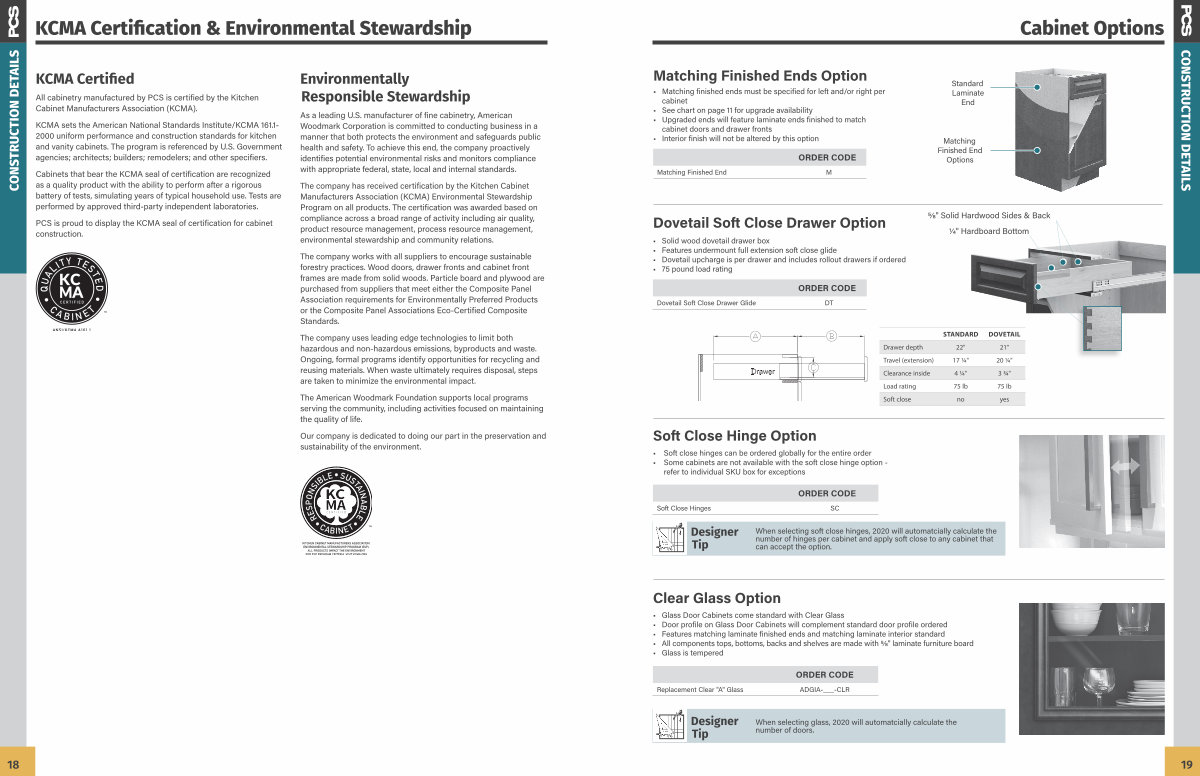 • Soft close hinges can be ordered globally for the entire order