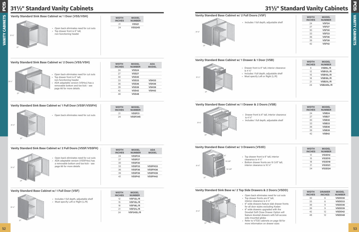 311 / 2 " Standard Vanity Cabinets |