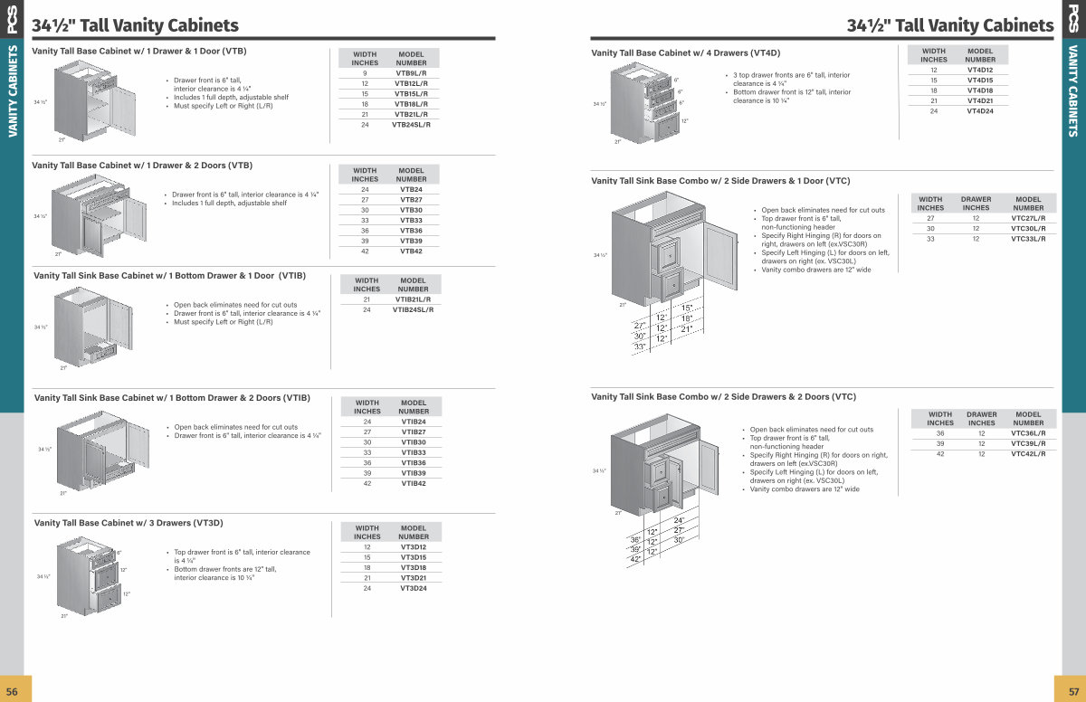 • Specify Left Hinging( L) for doors on left, drawers on right( ex. VSC30L)