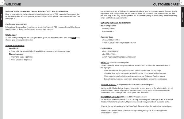 Welcome To The Professional Cabinet Solutions " PCS " Specification Guide