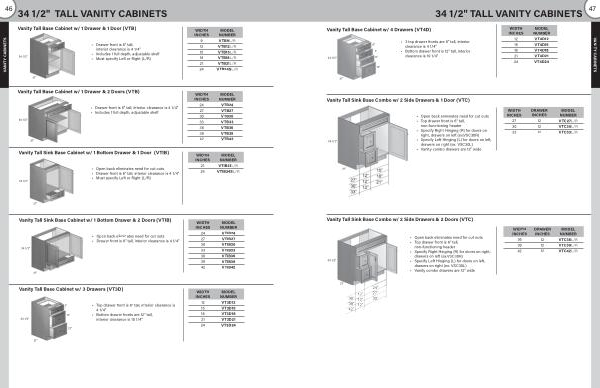 Vanity Tall Base Cabinet w / 3 Drawers ( VT3D )