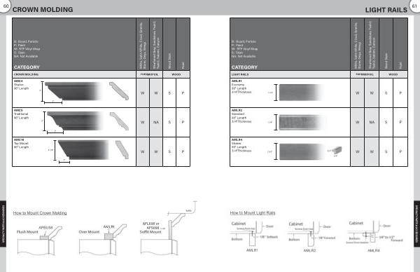 B : Board , Particle P : Paint W : RTF Vinyl Wrap S : Stain NA : Not Available